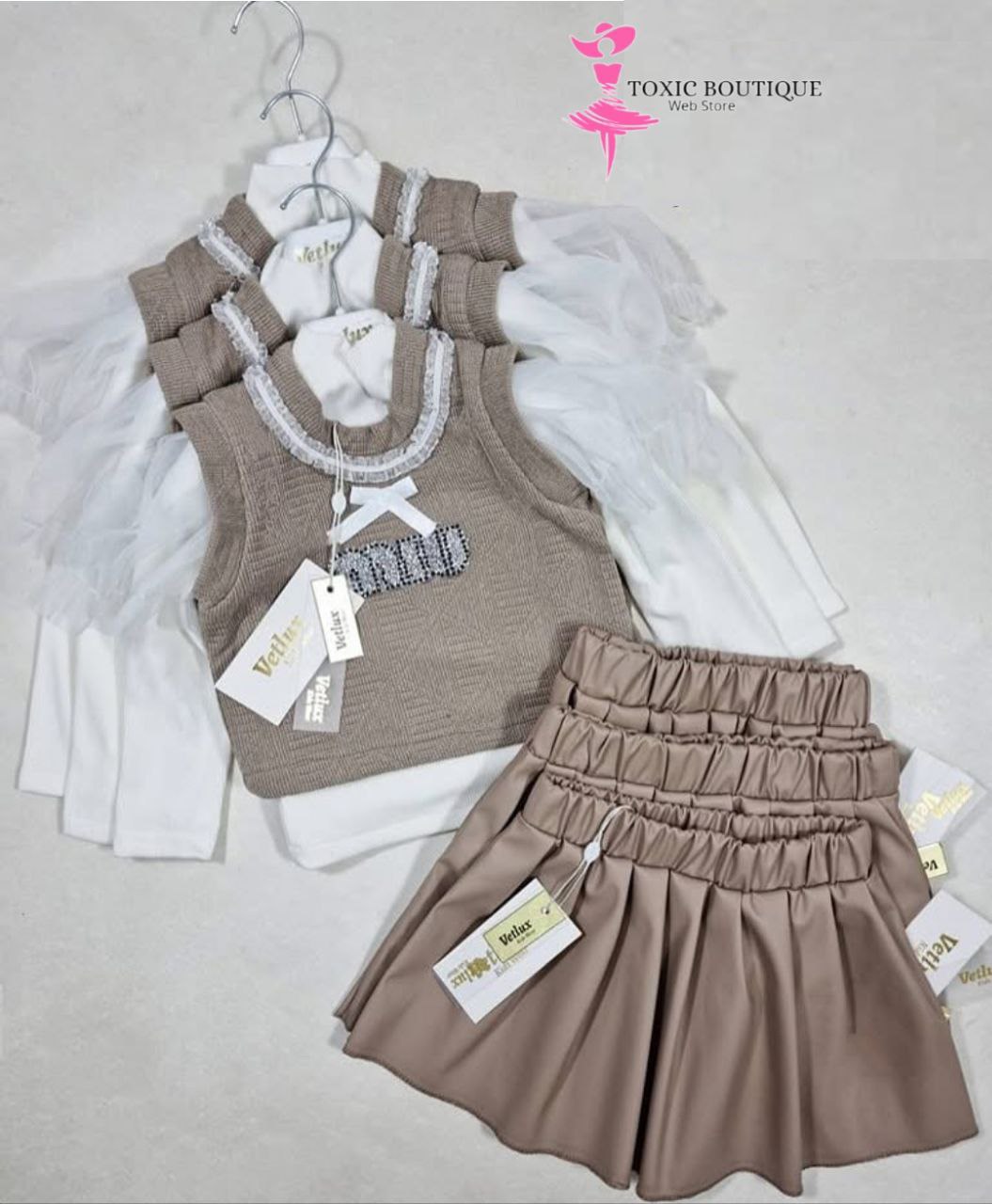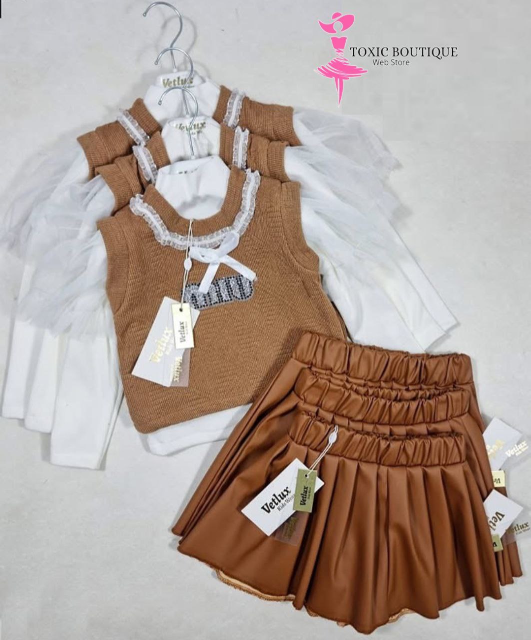 هل تبحثين عن إطلالة لابنتك تجمع بين الأناقة والعصرية؟ طقم بنات ليوبار هو الخيار المثالي لكِ! يتألف من سترة رائعة بنقوش الفهد المميزة، مع تنورات متعددة الطبقات بلون بني جذاب، مما يمنحك إطلالة مفعمة بالأنوثة.
